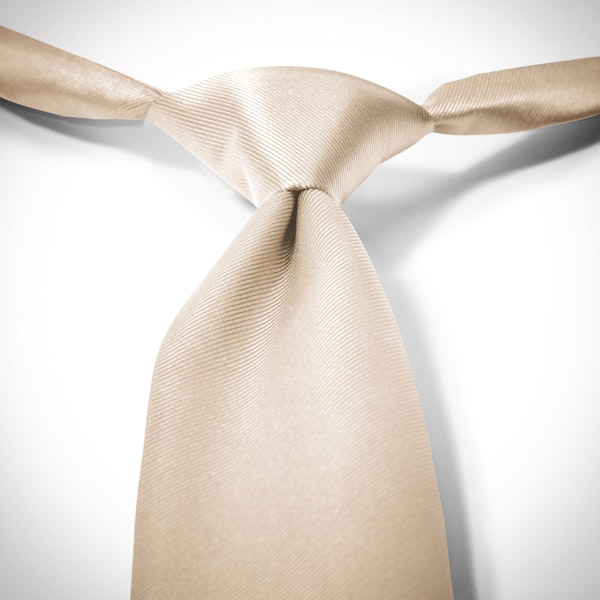 This solid champagne tie features a satin twill finish with a subtle impression of texture, and can be worn alone or with a matching vest. This champagne color adds a natural and charming pop to any look.