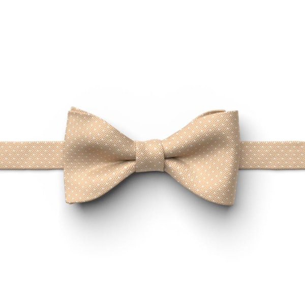 This golden pre-tied bowtie features a pin dot pattern with a subtle impression of texture. The golden adds a strong and confident touch to any look.