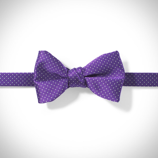 The understated design of our pre-tied viola and white pin dot bow tie makes a subtle style statement that's both classic and distinctive.
